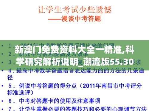 在这个数字化和信息爆炸的时代,获取精准的信息资源成为了人们日常工作和学习中不可或缺的一部分。特别是对于科学研究领域,高效、准确地获取相关资料对于推动科学进步具有重要作用。本文将详细介绍"新澳门免费资料大全"这一精准的信息资源宝库,并对其科学研究解析说明进行全面分析,让您轻松掌握潮流资讯。
