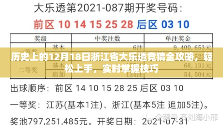 本文将指导初学者和进阶用户如何参与历史上的12月18日浙江省大乐透竞猜活动,包括必要的准备工作、参与流程、技巧分析和常见问题解答,通过本文的学习,您将能够轻松掌握大乐透竞猜的规则和技巧,提高中奖几率。