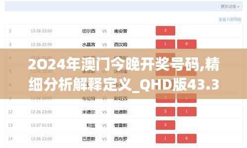 在探讨关于“2024年澳门今晚开奖号码,精细分析解释定义_QHD版43.306”的主题之前,我们先来明确几个核心概念的内涵。“QHD版43.306”代表的是高质量与高分辨率的定义,QHD”即Quad High Definition的缩写,用以指代超越传统高清的四倍分辨率表现,在彩票领域,“开奖号码”指的是在特定开奖时段中,系统随机抽取的一系列数字,这些数字是判断彩票是否中奖的关键,本文将详细剖析澳门彩票开奖号码的各个环节,为彩民提供更加深入的分析和解读。