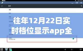 随着智能科技的飞速发展,各类手机应用程序(app)如雨后春笋般涌现,满足了用户多样化的需求,我们将为大家带来一款在特定日期——往年12月22日展现出其独特魅力的app——“实时档位显示app”的详尽评测与介绍。