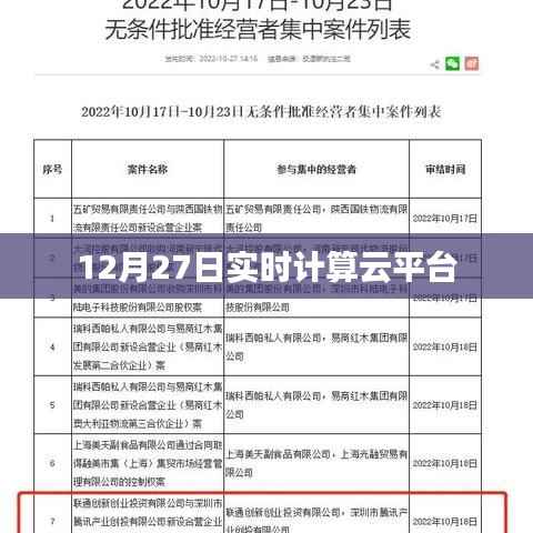 随着信息技术的飞速发展,云计算已成为企业、组织乃至个人不可或缺的技术支撑,尤其在大数据、物联网和人工智能等技术的推动下,实时计算云平台的重要性愈加凸显,本文将详细介绍12月27日的实时计算云平台,探讨其技术特点、应用现状及未来发展趋势。