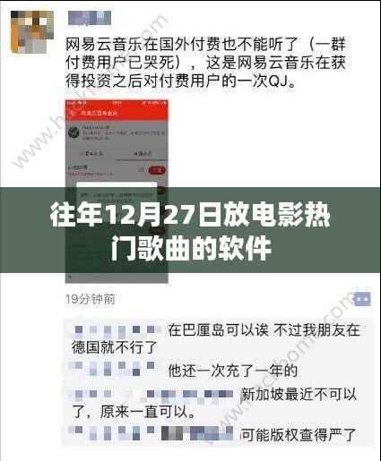 网易云音乐是一款非常受欢迎的音乐社区软件,它拥有庞大的用户群体和丰富的音乐资源,在往年12月27日放电影时,许多用户都会使用网易云音乐来播放电影中的歌曲,网易云音乐还拥有许多特色功能,如歌曲评论、动态音效等,用户可以在软件中与其他人分享自己的听歌感受,发现更多与自己喜好相同的歌曲。