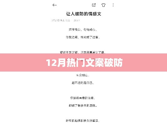 随着季节的更迭,我们迎来了充满温馨与期待的十二月,在这个充满节日氛围的月份里,各种富有感染力的文案也如雪花般纷纷扬扬,深入人心,唤起人们的共鸣,本文将带你领略十二月热门文案的魅力,一同感受那份破防的情感。