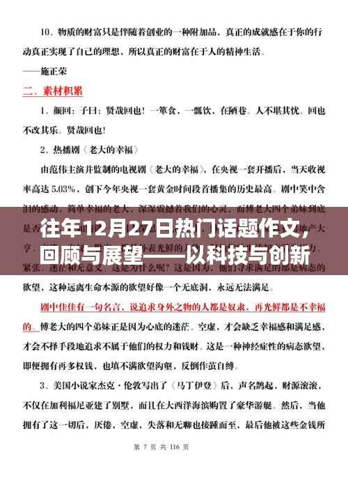 随着时代的发展,科技的进步与创新已经成为我们生活中不可或缺的一部分,在这个充满变革的时代,每年的热门话题都在不断演变和更新,本文将围绕往年12月27日的热门话题展开,探讨科技与创新的重要性及其对我们生活的影响。