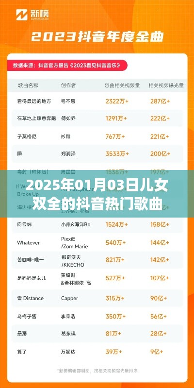 随着时代的变迁,音乐潮流也在不断发展,在2025年1月3日,儿女双全的家庭在抖音上热门歌曲也有着独特的风格和魅力,这些歌曲旋律动听,歌词富有感染力,容易引起人们的共鸣,本文将介绍当时抖音上的热门歌曲,并探讨它们的独特之处。
