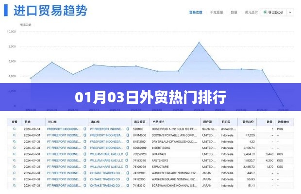随着全球经济一体化的深入发展,外贸行业日益繁荣,各类商品和服务的进出口交易活跃,本文根据最新的数据和信息,为大家带来《01月03日外贸热门排行》,揭示当前外贸领域的热门商品和服务,为相关企业和个人提供有价值的参考。