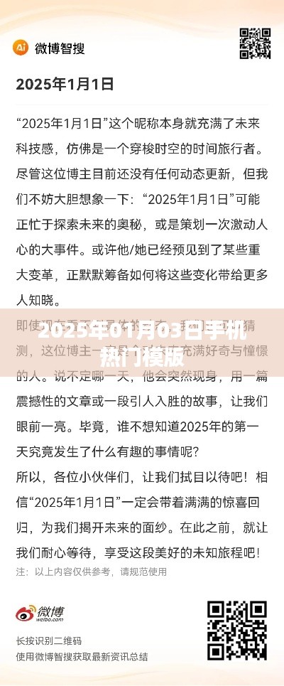 随着科技的飞速发展,手机已经成为我们日常生活中不可或缺的一部分,在即将到来的2025年1月3日,手机市场的热门模板将会呈现怎样的趋势和特点呢?本文将从功能特点、设计创新、用户体验、智能发展等方面,探讨未来手机热门模板的走向。