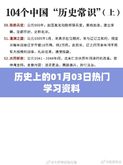每年的01月03日,都在世界历史的长河中留下了深刻的印记,这一天,不仅发生了许多重要的历史事件,而且也涌现出了大量的学习资料,为后世提供了宝贵的参考,本文将带领大家回顾历史上的01月03日,挖掘那些热门的学习资料,以期从中汲取智慧,启迪当下。