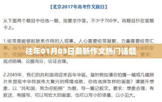 随着时间的流逝,每年的日子都充满了新的希望和机遇,每年的第一天,人们都在为新的一年设定目标,规划未来,而在这其中,有一些特定的日期和事件成为了我们关注的焦点,本文将围绕“往年01月03日最新作文热门话题”这一主题展开讨论,探究这一日期背后的社会热点和文化现象。