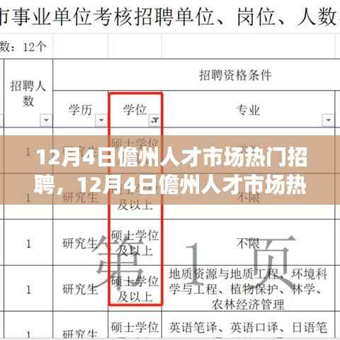 随着季节的转换,时间的车轮驶入了充满机遇与挑战的冬季,在这个寒冷的季节里,儋州人才市场却是一片火热,本文将带您走进12月4日儋州人才市场的招聘现场,为您揭示那些热门职位背后的故事,带您了解这个市场的最新动态。