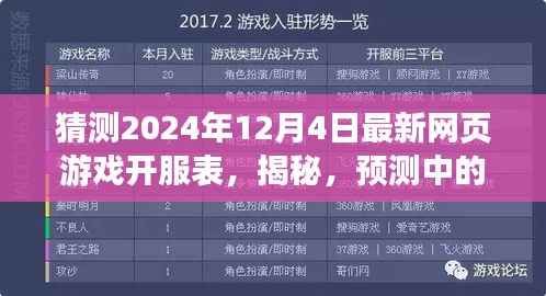 随着科技的快速发展,网页游戏市场持续繁荣,本文将为您详细介绍预测中的XXXX年XX月XX日的最新网页游戏开服表,从产品特性、使用体验、竞品对比、优缺点分析以及目标用户群体等方面进行全面解读,带您领略这款游戏的魅力。