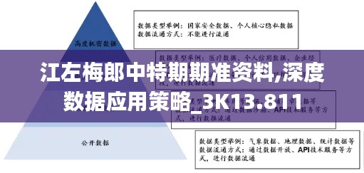 江左梅郎中特期期准资料是一种专业的数据应用策略,涉及深度数据挖掘、分析与应用等多个领域。“江左梅郎”指的是特定的数据集,而“中特”则代表一种加密算法,这一策略的核心在于“期期准”,意味着数据采集的时间周期性和准确性,该策略旨在通过一系列复杂操作,对“江左梅郎”数据集进行深入挖掘和分析,以获取有价值的信息。