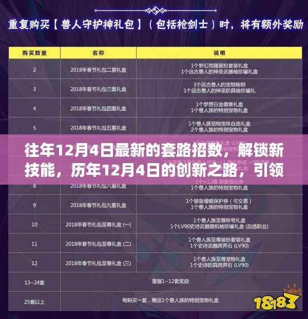 亲爱的朋友们,让我们一同回顾那些往年12月4日诞生的最新套路招数,它们不仅仅是简单的小技巧或策略,更是激发我们内心潜能的火花,在这个日新月异的时代,变化是唯一不变的主题,学习新技能、掌握新套路,不仅能帮助我们应对生活的挑战,还能带来自信与成就感,让我们的人生更加丰富多彩。