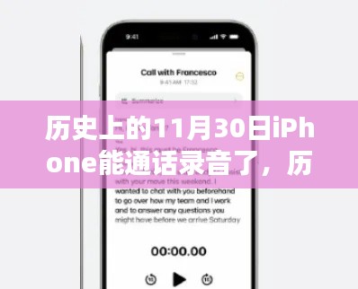 回望科技发展的历程,我们会发现,每一次技术的飞跃都深刻地影响着我们的生活,就在历史上的某个11月30日,iPhone迎来了一个重大的更新——通话录音功能的诞生,这一功能不仅改变了我们记录生活的方式,更在某种程度上改变了我们的沟通习惯,让我们一起走进那个充满创新与变革的日子,探寻这一功能背后的故事。