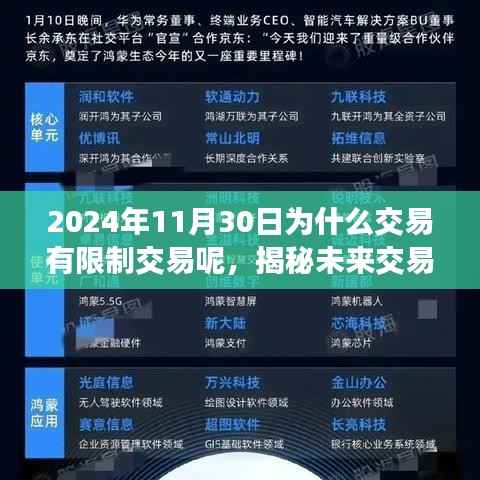 随着科技的飞速发展,我们迎来了全新的交易时代,在这个时代,交易不再是简单的买卖行为,而是融合了高科技元素的前沿体验,本文将聚焦于未来的交易新纪元,为您揭示为何在特定的时间点——如神秘的2024年11月30日——交易会有限制性规定,并介绍一款引领潮流的高科技产品,展现科技如何重塑交易体验,改变生活面貌,激发科技爱好者的无限兴趣。