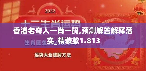 香港老奇人一肖一码的精装款1.813象征着一种独特的服务和预测体系,其中的“1.813”这个数字可能含有特定的含义,代表着某种特殊的预测模式或算法的编号。