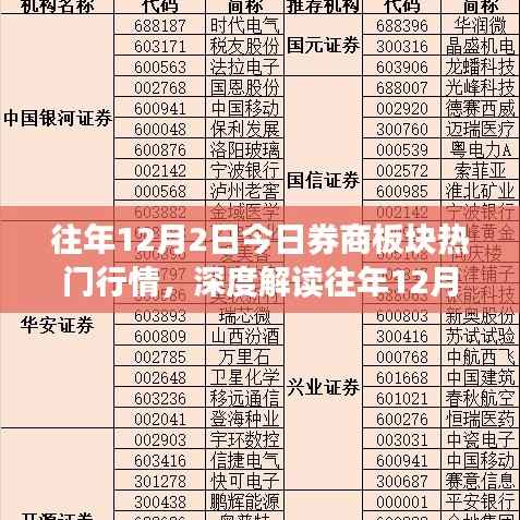 在金融市场波澜壮阔的浪潮中,每年的热门行情都是投资者关注的焦点,对于往年12月2日的券商板块热门行情而言,其走势不仅反映了当时市场的活跃程度,更预示着未来投资趋势的重要信号,本文将围绕这一主题展开论述,着重阐述某某观点,以期对投资者有所启示。