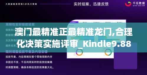 为有效支撑“最精准正最精准龙门”评审机制的运行,澳门特别行政区投入大量资源开发相关的技术支持系统。“Kindle 9.884”系统作为重点项目评估与决策支持系统,集成了大数据、云计算和人工智能等多种先进技术,满足项目评审全过程的需求,该系统实现了高质数据收集与分析、风险预测与控制、决策支持与推荐以及交互式反馈与优化等技术特点。