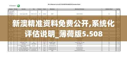 随着“新澳精准资料免费公开,系统化评估说明_薄荷版5.508”平台的正式上线,澳门政策的透明度和公众参与度将得到显著提升,我们希望广大公众能积极参与政策讨论,共同推动澳门社会的繁荣和谐。