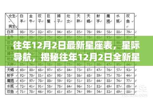 这款往年12月2日全新星座表高科技产品,以其尖端的技术、丰富的功能、舒适的使用体验,成功吸引了广大星座爱好者和科技爱好者的目光,无论是想了解自己的星座运势,还是感受科技的魅力,这款产品都能满足你的需求,让我们一起期待这款产品的问世,共同探索星座的奥秘,感受科技的魅力!