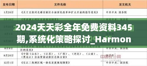 “2024天天彩全年免费资料345期——系统化策略探讨_Harmony2.482”政策文件的推出是澳门彩票行业发展新的里程碑,通过实施创新策略,澳门彩票行业将进一步提升市场竞争力,为彩民提供更多元化、高质量的彩票信息服务,澳门彩票行业将继续坚持创新,谋求合作,推动行业的持续健康发展。