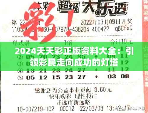 转载请注明来自新锐数学,本文标题:《2024天天彩正版资料大全:引领彩民走向成功的灯塔》