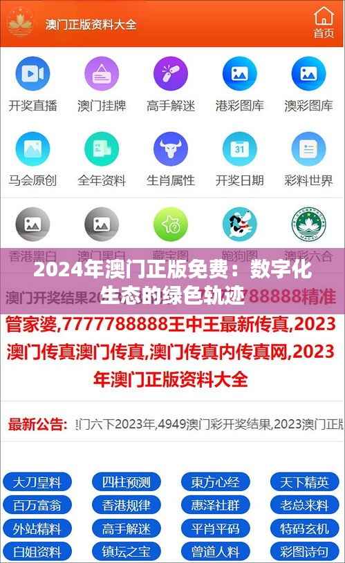 随着2024年澳门特别行政区成立25周年的到来,澳门在推动绿色可持续发展和数字化转型方面取得了显著成就,特区政府以《2024年澳门正版免费:数字化生态的绿色轨迹》为方针,致力于深化绿色发展,构建具有澳门特色的数字生态系统,以实现社会经济的高质量进步与生态和谐共生。