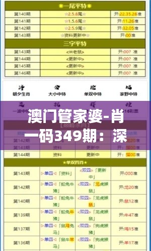 随着信息技术的飞速发展,澳门政策文件的发布与传递方式正经历一场深刻的变革,澳门管家婆-肖一码349期,作为这一变革的见证者与参与者,为我们深刻剖析了每一期政策文件中的数字奥秘,本文将通过肖一码349期的视角,深入探讨澳门政策文件的数字化转型及其背后的技术支撑。