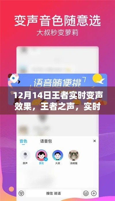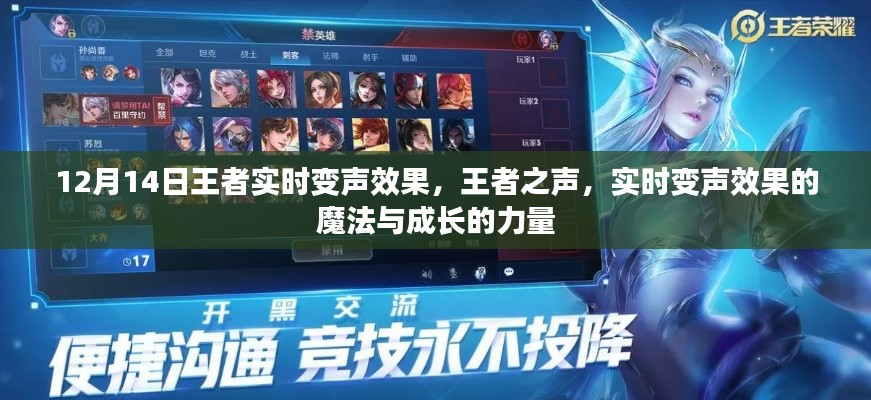 随着科技的飞速发展,我们生活中的每一个角落都充满了新奇与惊喜,就在刚刚过去的12月14日,一个全新的王者实时变声效果席卷而来,它不仅仅是一个科技产品,更是我们内心成长的见证和助力器,让我们一起探讨这个神奇的变声效果背后的故事,感受学习变化带来的自信与成就感,融入正能量和幽默感,激发我们前行的动力。