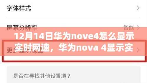 随着科技的飞速发展,智能手机已成为我们日常生活中不可或缺的一部分,华为nova 4作为华为旗下的中高端机型,其性能与功能都受到了广大用户的关注,特别是在12月14日,关于华为nova 4如何显示实时网速的问题,引发了众多网友的热烈讨论,本文将围绕这一话题展开论述,探讨实时网速显示功能的利弊,并阐述个人立场及理由。