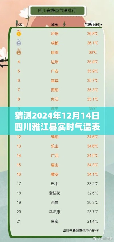 转载请注明来自新锐数学,本文标题:《揭秘四川雅江县气温奥秘,一场关于气温的探险之旅(预测至2024年12月14日实时气温表)》